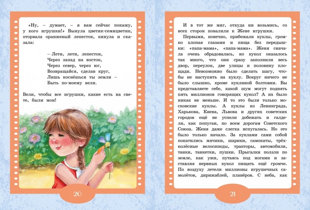 В книгу вошли две замечательные сказки Валентина Катаева — «Цветик-семицветик» и «Дудочка и кувшинчик». Весёлые, увлекательные истории, ставшие любимыми многими поколениями юных читателей, помогут ребёнку усвоить важные жизненные уроки, научиться быть добрым, смелым и трудолюбивым.
