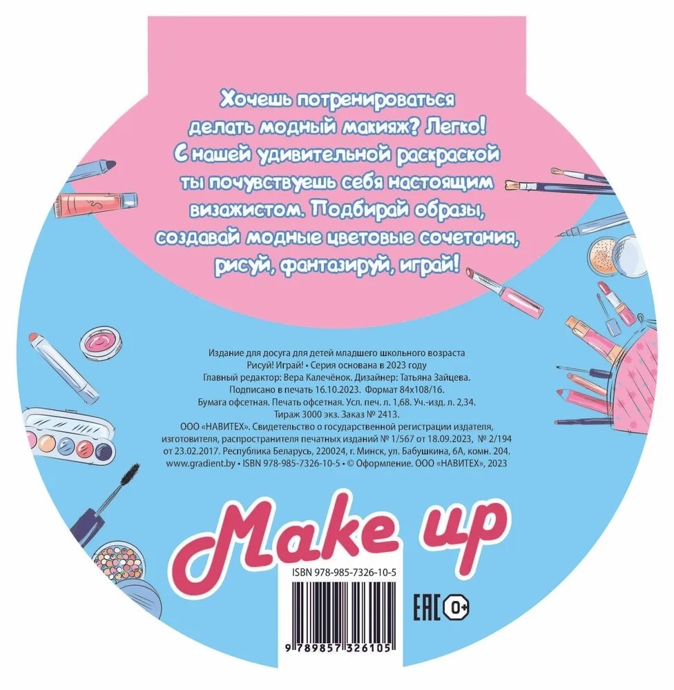 С этой удивительной раскраской маленькие модницы смогут почувствовать себя настоящим визажистом, потренируются делать модный макияж, а также разовьют творческие способности, воображение, внимание, усидчивость и мелкую моторику.