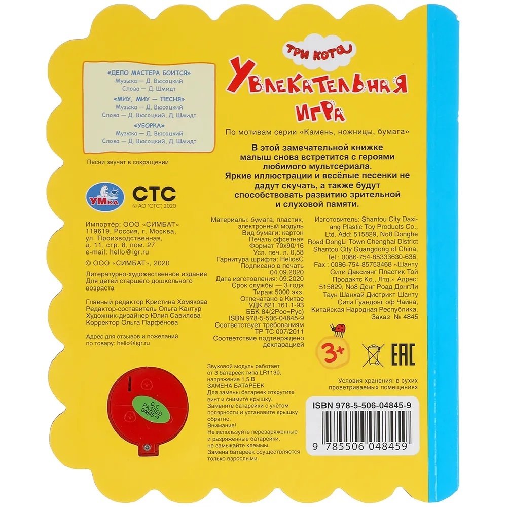 Музыкальная книжка игрушка для малышей. Три кота. Увлекательная игра