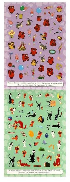 Ребёнок с удовольствием будет приклеивать яркие стикеры с изображением персонажей добрых мультфильмов студии «Союзмультфильм», украшая ими альбомы и тетради или создавая на бумаге свои собственные удивительные истории с их участием.