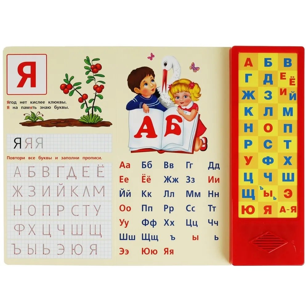Захватывающая книга Азбука в стихах и картинках станет прекрасным детским подарком, не только способствуя развитию литературных навыков, но и олицетворяя прекрасные сказки и стихи. Внутри вас ждут 33 магические звуковые кнопки, добавляющие элемент интерактивности и веселья.