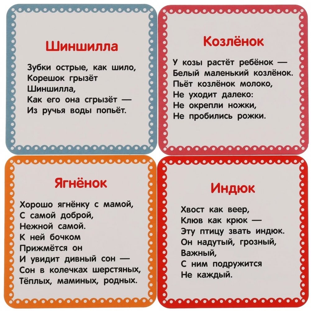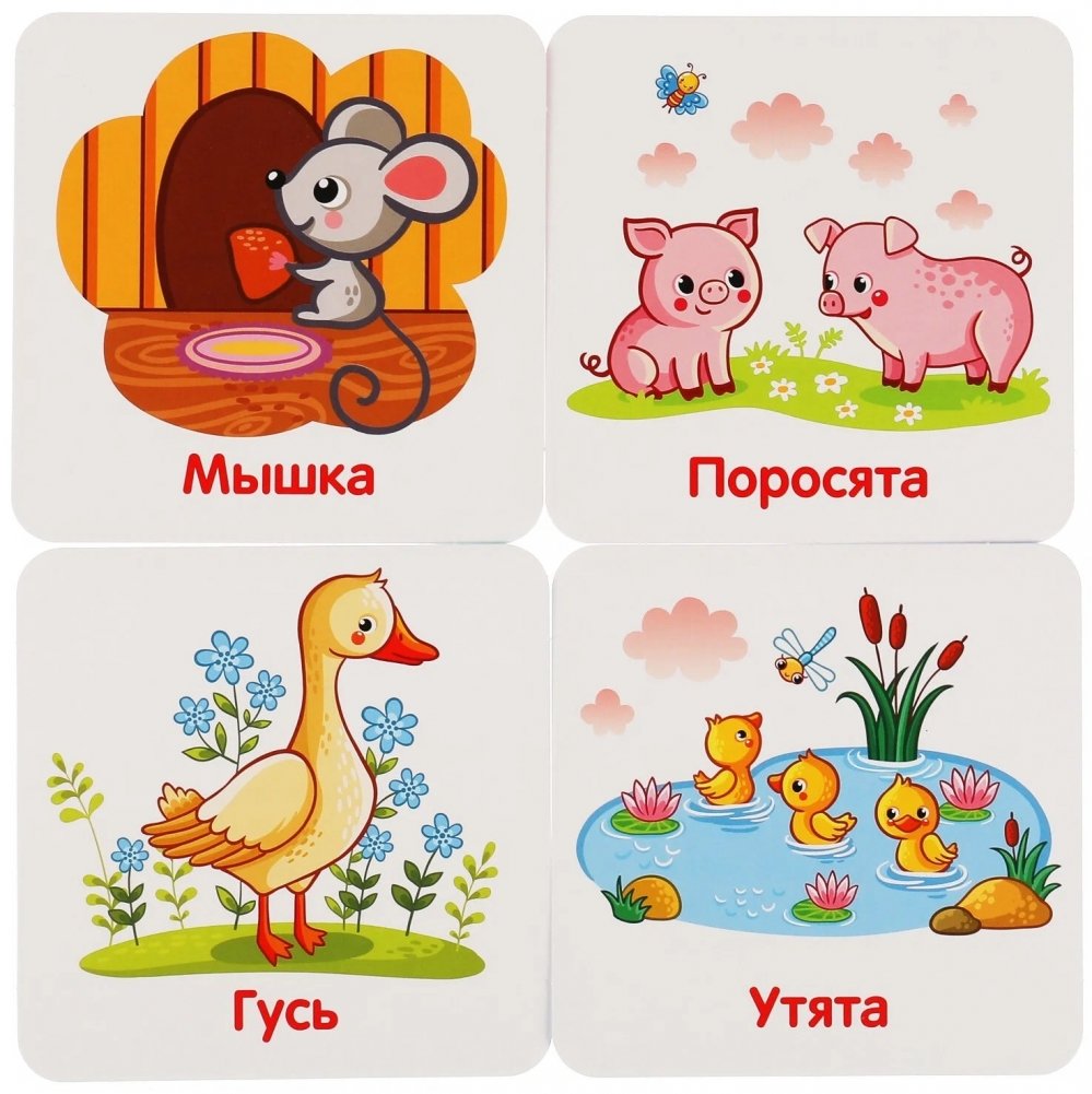 Ребёнок сможет весело и с пользой провести время за этой увлекательной игрой. Яркие карточки из данного набора познакомят малыша с домашними животными, а весёлые стихи помогут запомнить их названия и потренировать память. Благодаря компактным размерам набор удобно брать с собой в дорогу.
