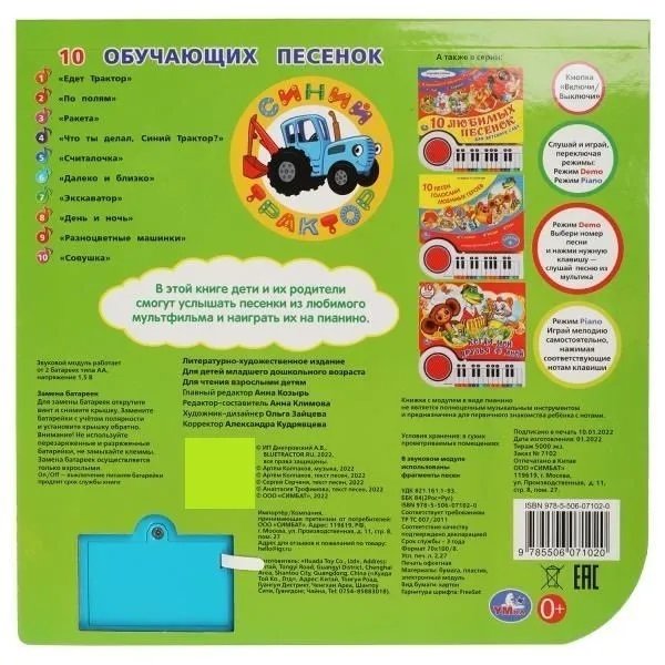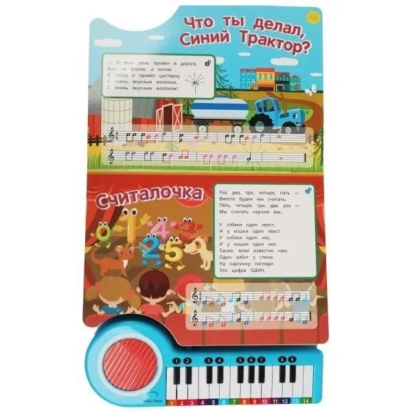 Книга-пианино Синий Трактор 10 обучающих песенок - не просто детская книжка, а музыкальная игрушка, которая погружает малыша в захватывающий мир мелодий и звуков.