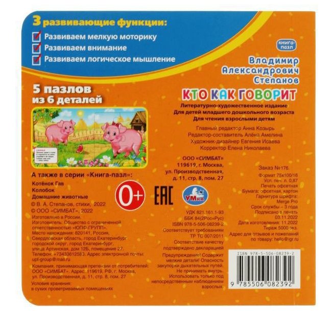Книга с 5 пазлами «В. Степанов. Кто как говорит» ТМ «УМка» станет прекрасным подарком для ребёнка: