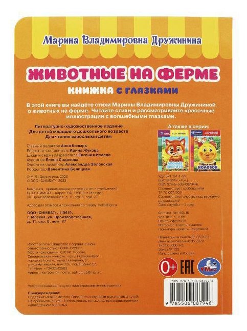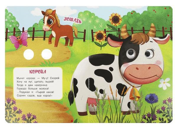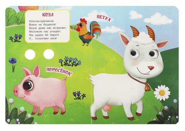 Яркая книжка с подвижными глазками - отличный подарок для малыша. Она познакомит его с обитателями фермы, а замечательные картинки и весёлые стихи Марины Дружининой не дадут ему заскучать и вызовут большой интерес к чтению. Компактный размер книги позволяет взять её с собой в путешествие.