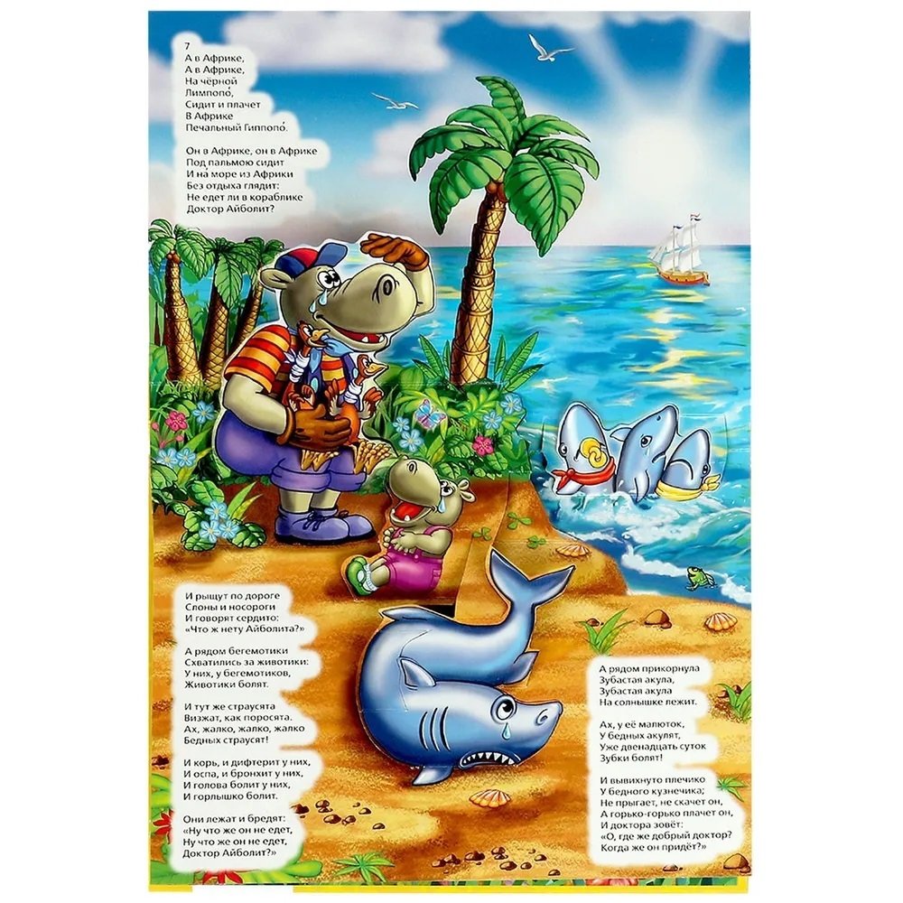 Айболит – это не только детская книжка, но и развивающая игра для малышей. Она развивает логику, воображение и навыки чтения. Изучая каждую страничку удивительной книжки-игрушки, ребенок весело обучается и расширяет свой кругозор.