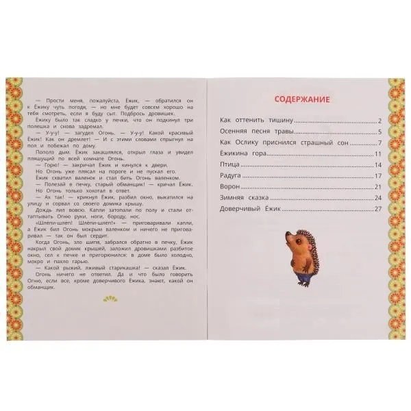 В книге собраны добрые истории о приключениях Ёжика и Медвежонка: как они помогли Зайцу достать до звезд, завели дружбу с Вороном, а Ёжика обманул Огонь. Ребёнок с удовольствием погрузится в совместное с родителями чтение такой увлекательной книги, а красочное оформление сделает этот процесс ещё более приятным занятием.