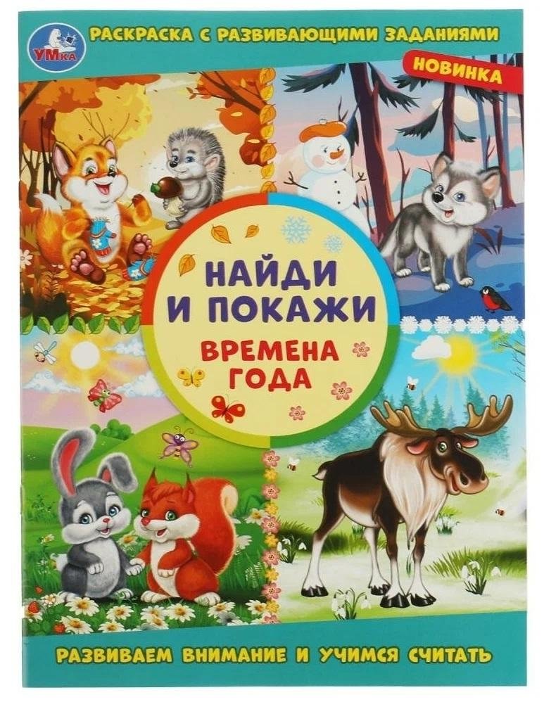 Раскраска с развивающими заданиями «Времена года» из серии «Найди и покажи» ТМ «УМка» станет отличным подарком для маленьких любознаек: