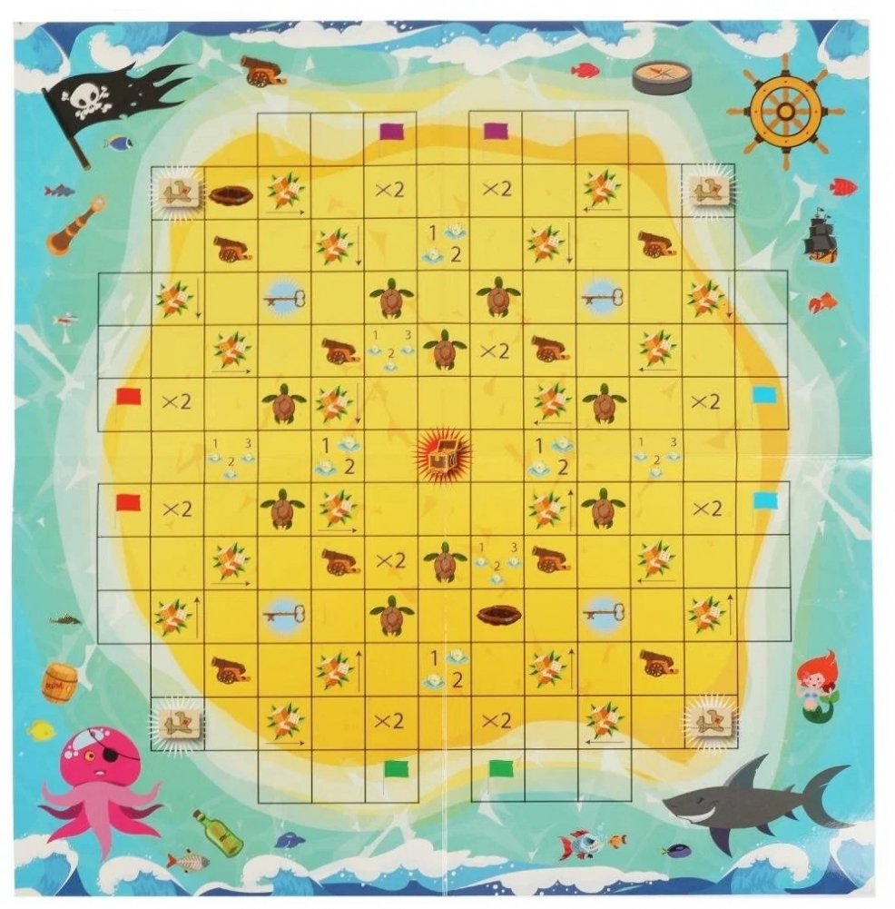 На безлюдном острове спрятаны несметные богатства. Тот игрок, кто первым соберёт карту, ключ (именно в такой последовательности) и дойдёт до сундука с сокровищами, станет победителем.