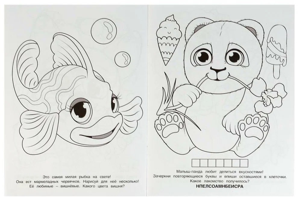 Занимательная раскраска с милыми персонажами не только развлечёт ребёнка, но и поможет ему подготовить руку к письму. Благодаря удобному размеру раскраску можно взять с собой в дорогу.
