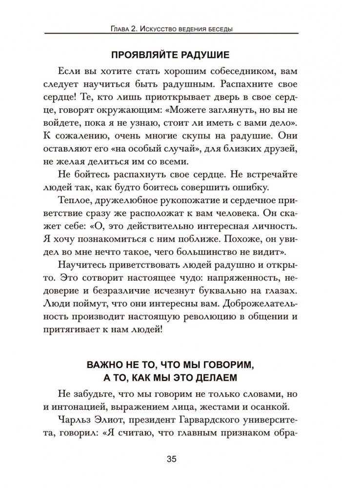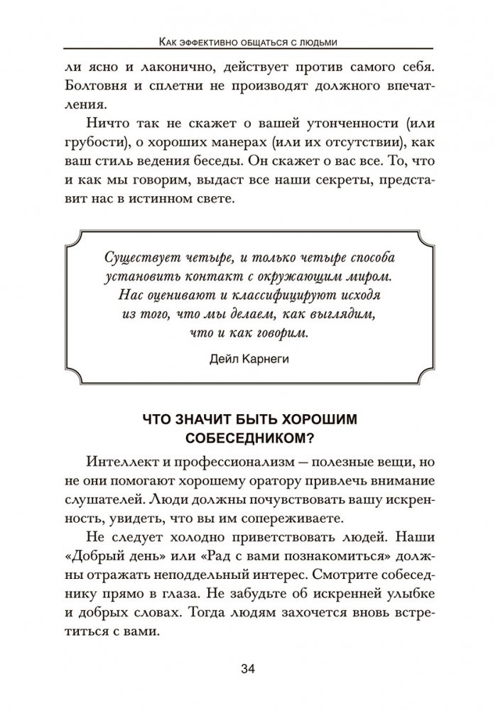 В наши дни общение стало основным фактором успеха. Все, кого называют великими лидерами, умеют эффективно общаться с людьми. К счастью, коммуникабельность — это не врожденное качество. Научиться правильно общаться может каждый, стоит только захотеть. В этой книге вы найдете новые стратегии Дейла Карнеги, которые научат вас связно и четко излагать свои мысли, правильно слушать и понимать сказанное, делать свою речь яркой и убедительной, пользоваться языком телодвижений и легко интерпретировать жесты вашего собеседника.