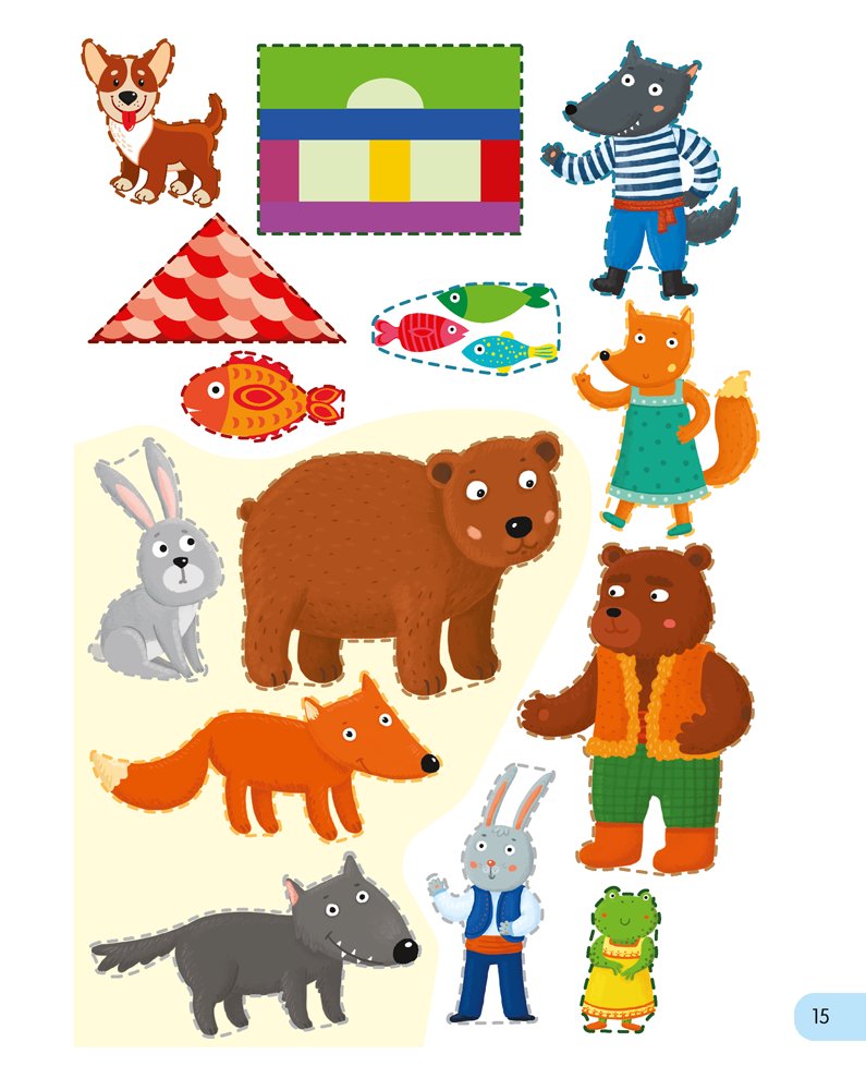 Задания охватывают разные темы, а иллюстрации и элементы для вырезания яркие и понятные для ребенка.