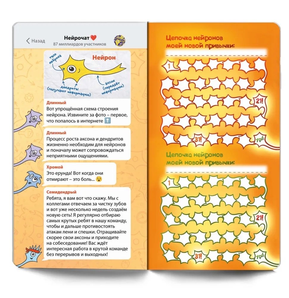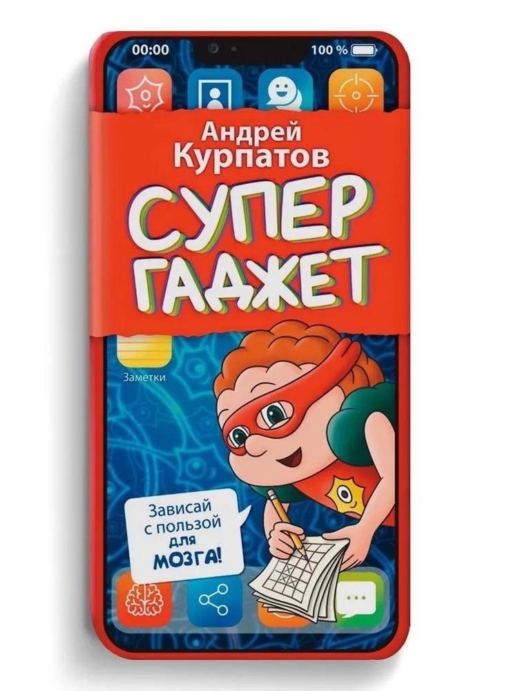 "Супергаджет" - уникальный блокнот, разработанный "Академией смысла для детей" в помощь родителям, которые думают о будущем своих детей. Идеально вписывается в современный тренд сокращения экранного времени. Ребёнку легко будет остановить себя и заменить гаджет на "Супергаджет", в котором можно поиграть, пообщаться с друзьями и даже составить планы на будущее. И это далеко не всё! На страницах блокнота супергерой Мозг придаст мотивации и решительности в борьбе с цифровой зависимостью, а его главные помощники нейроны поднимут настроение в Нейрочате.
