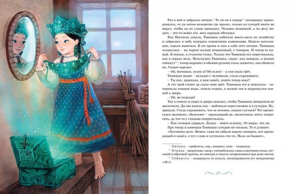 «Малахитовая шкатулка» – сборник удивительных и неповторимых по красоте сказов. Их герои, простые люди, сталкиваются в повседневной жизни с волшебными созданиями, которые существуют независимо от воли человека и показываются лишь избранным. И каждая встреча не проходит бесследно. Так Танюшке достаётся в наследство шкатулка с украшениями из драгоценных камней, Данило-мастер отправляется в царство Хозяйки Медной горы за каменным цветком, а Серебряное копытце одаривает самоцветами Кокованю и Дарёнку. Произведения Павла Бажова увлекают в свой сказочный мир и рассказывают о смелых и честных героях.