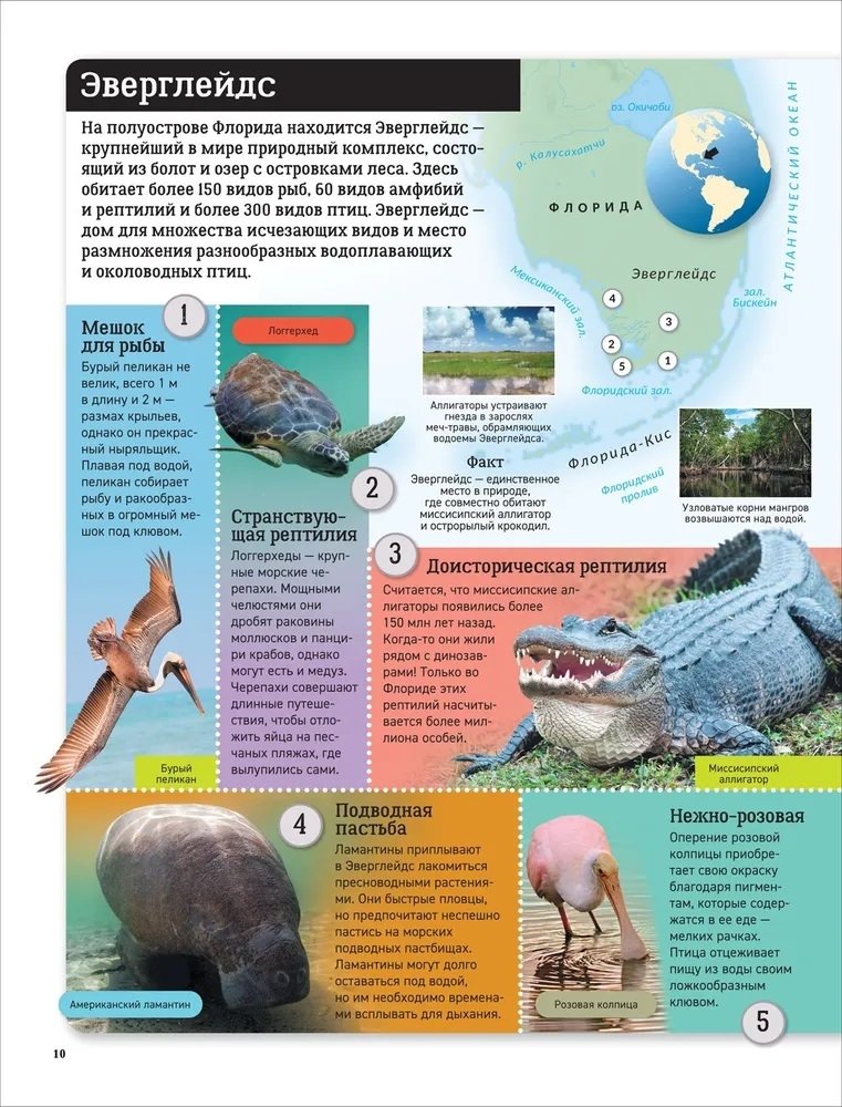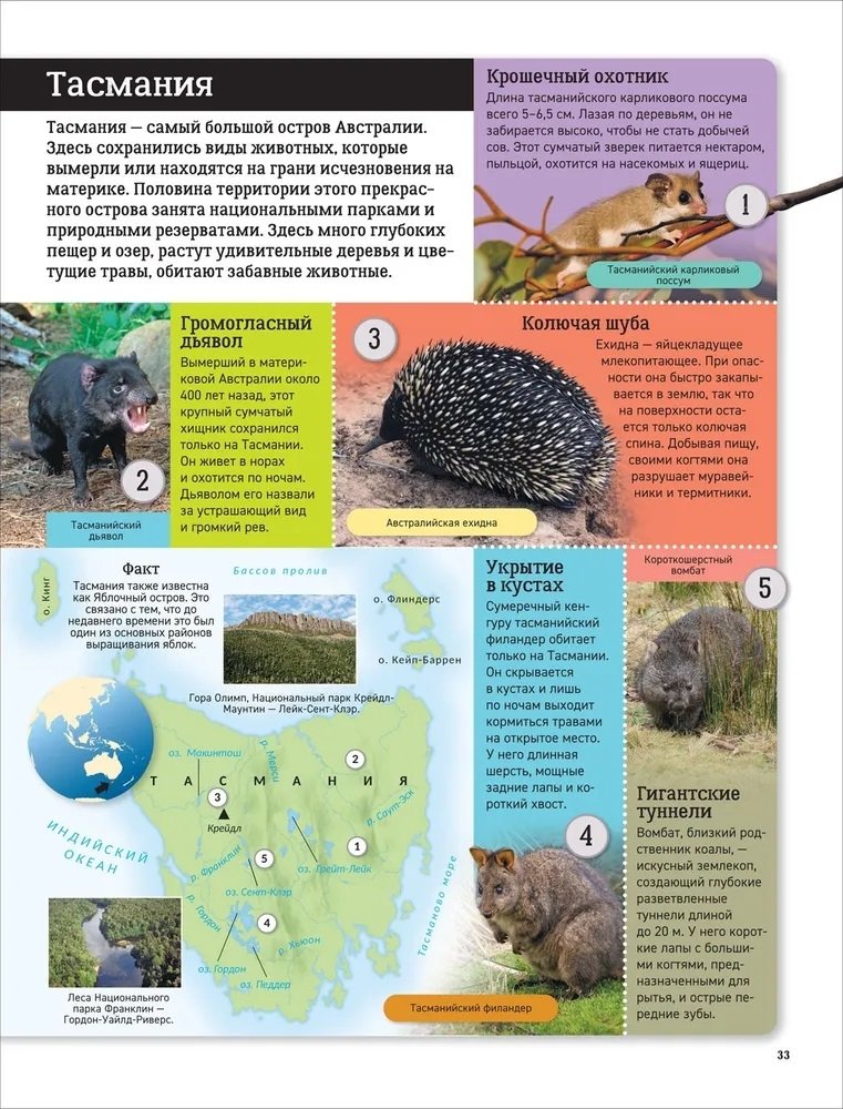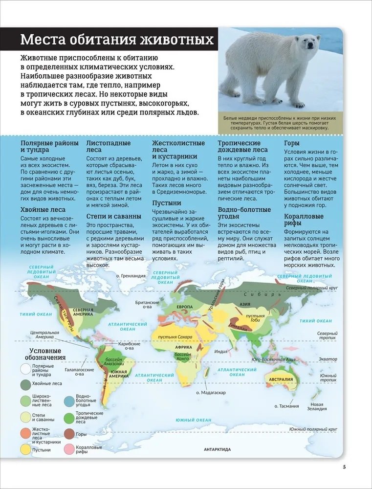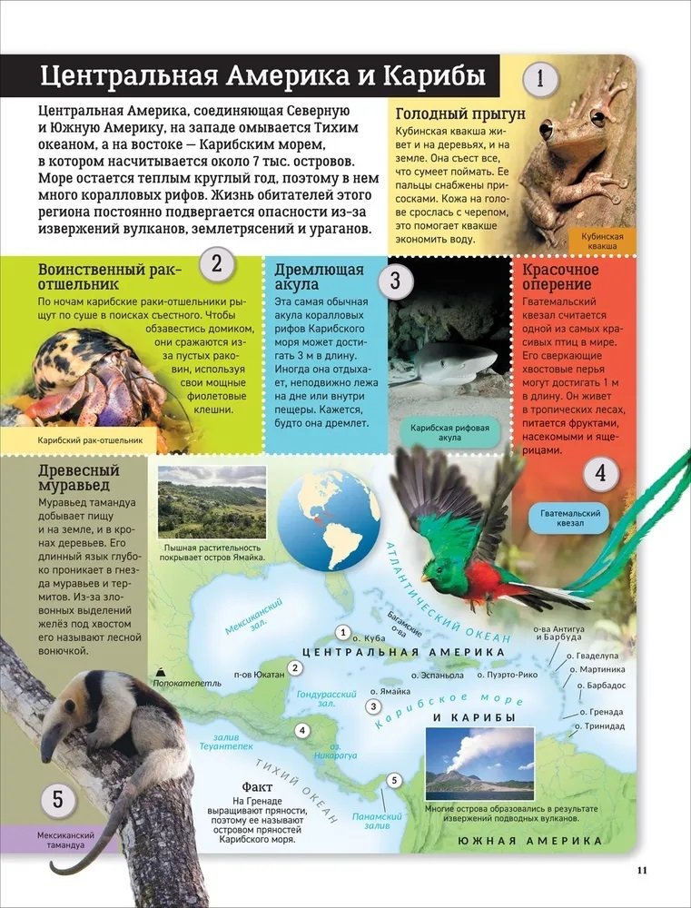 Эта книга расскажет вам обо всех материках нашей планеты и познакомит с их удивительной живой природой. Вы побываете в покрытой льдами Антарктиде в гостях у императорских пингвинов, понаблюдаете за ягуарами в жарких тропических лесах Амазонии, подниметесь над высокими горами Южной Америки вместе с андским кондором и опуститесь в морские глубины Мирового океана вслед за горбатым китом. Вы узнаете о жизни и повадках самых разных животных, от крошечных карликовых поссумов до гигантских африканских слонов, а также о том, как все они приспосабливаются к условиям окружающей среды. А яркие иллюстрации и точные карты помогут вам не заблудиться в вашем путешествии!