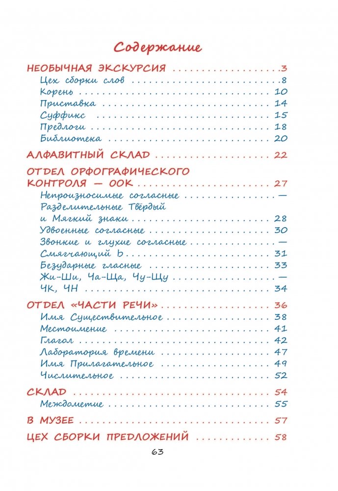 Приглашаем вас на необычную экскурсию! Вместе с Анфисой Котиковой вы побываете на Грамматической фабрике и откроете её секреты! Посмотрите, как на конвейерах создают слова весёлые человечки Корень, Приставка, Суффикс, Окончание; заглянете на Алфавитный склад, где хранятся Буквы, и в библиотеку к Словарям; побеседуете с работниками фабрики: Морфологией Грамматиковной, Стилистикой, Фонетикой и другими. Вместе с Анфисой исправите ошибки, которые сделали Мышки-Ошибки, повеселитесь с Предлогами и Междометиями.