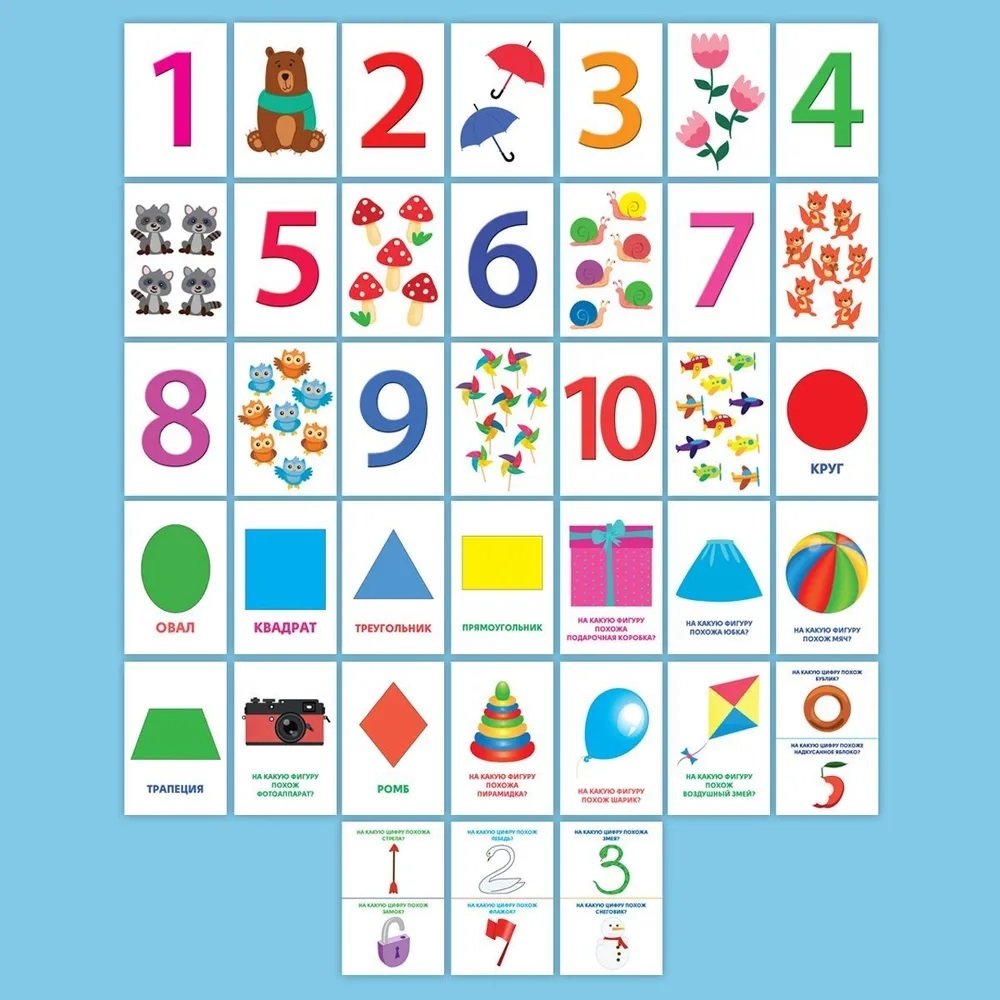Развивающие карточки. Цифры и фигуры