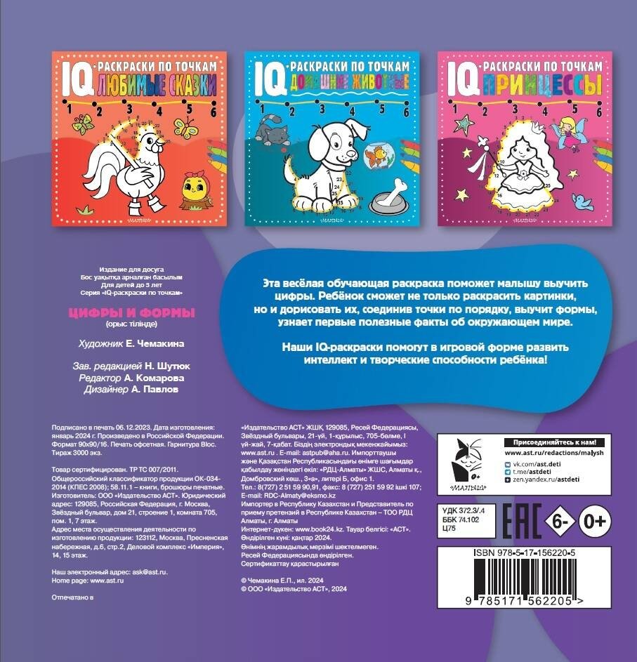 Эта весёлая обучающая раскраска поможет малышу выучить цифры. Ребёнок сможет не только раскрасить картинки, но и дорисовать их, соединив точки по порядку, выучит формы, узнает первые полезные факты об окружающем мире.