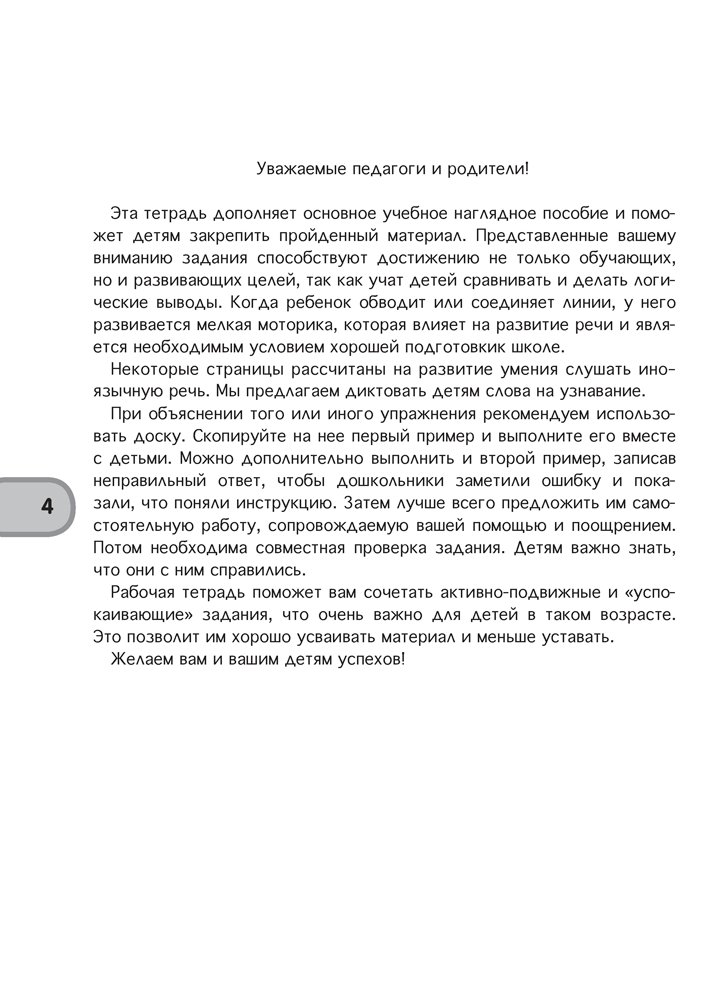 В пособии представлены игровые задания для самостоятельной творческой деятельности воспитанников старшей группы (от 5 до 7 лет), способствующие реализации задач образовательной области «Развитие речи и культура речевого общения (иностранный язык)» учебной программы дошкольного образования.
