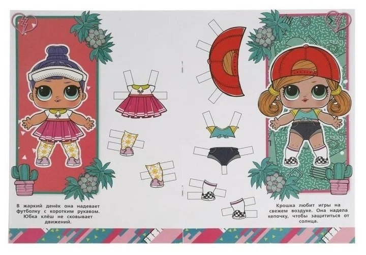 Юный дизайнер с удовольствием будет вырезать одежду для стильных подружек ЛОЛ и подбирать для них разнообразные наряды, а потом играть с ними, устраивая настоящие показы мод. Девочка может не только воспользоваться подобранными в данном альбоме комплектами одежды, но и придумать и нарисовать свои варианты, проявив фантазию и творчество.