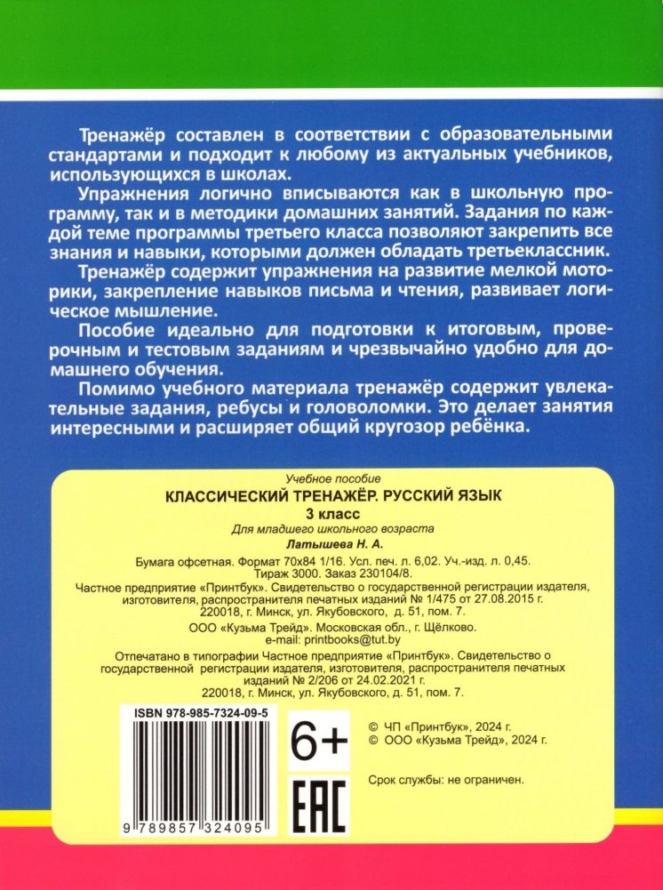 Упражнения логично вписываются как в школьную программу, так и в методики домашних занятий. Задания по каждой теме программы третьего класса позволяют закрепить все знания и навыки, которыми должен обладать третьеклассник.