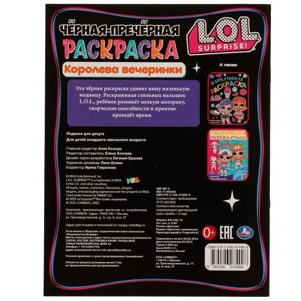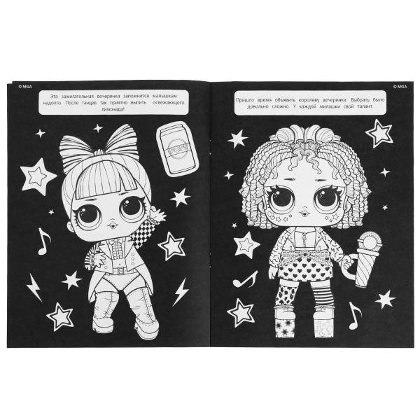 Чёрная-пречёрная раскраска «ЛОЛ. Королева вечеринки» ТМ «УМка» станет прекрасным подарком для юной художницы: