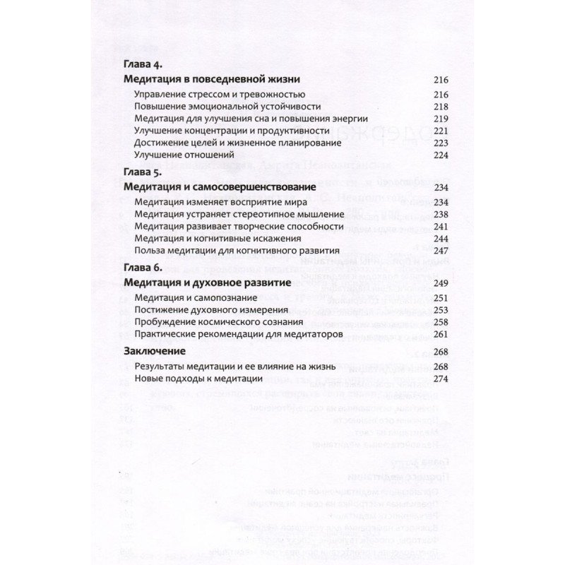 В книге предлагаются простые и понятные рекомендации для проведения медитационных практик, способствующих улучшению физического и психического здоровья, снижению стресса и тревоги, а также развитию осознанности, креативности и оптимизма. Материал книги основан на современных научных исследованиях, мудрости древних традиций и многолетнем опыте авторов.Эта книга подходит как для новичков, желающих начать свой путь в медитации, так и для опытных практикующих, стремящихся расширить свои знания и мастерство.