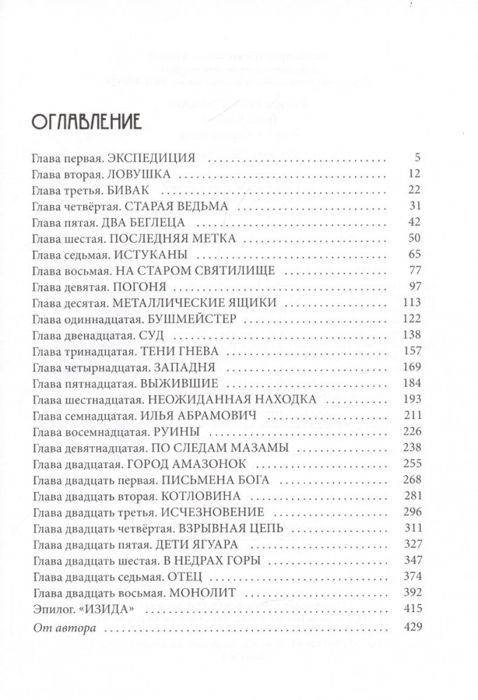 Перед вами - четвертая, заключительная книга серии "Город Солнца". Серии, объединившей в себе детектив, семейную сагу и триллер. Еще семь месяцев назад студенты московского Политеха даже не подозревали, что отправятся в Индию, потом в Шри-Ланку, а затем пересекут океан и окажутся в Перу. Отчаянные странствия героев окончатся в дождевых лесах Латинской Америки. Максим и его друзья идут по следам экспедиции перуанского плантатора Карлоса дель Кампо и русского мануфактурщика Алексея Затрапезного, основавших в дебрях Амазонии легендарный Город Солнца. Именно здесь будет раскрыта величайшая тайна цивилизации чавин, которую оберегали столетиями избранные со всего света.