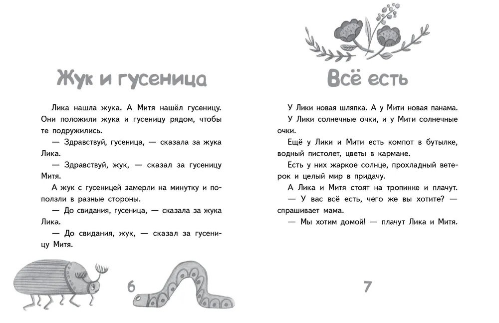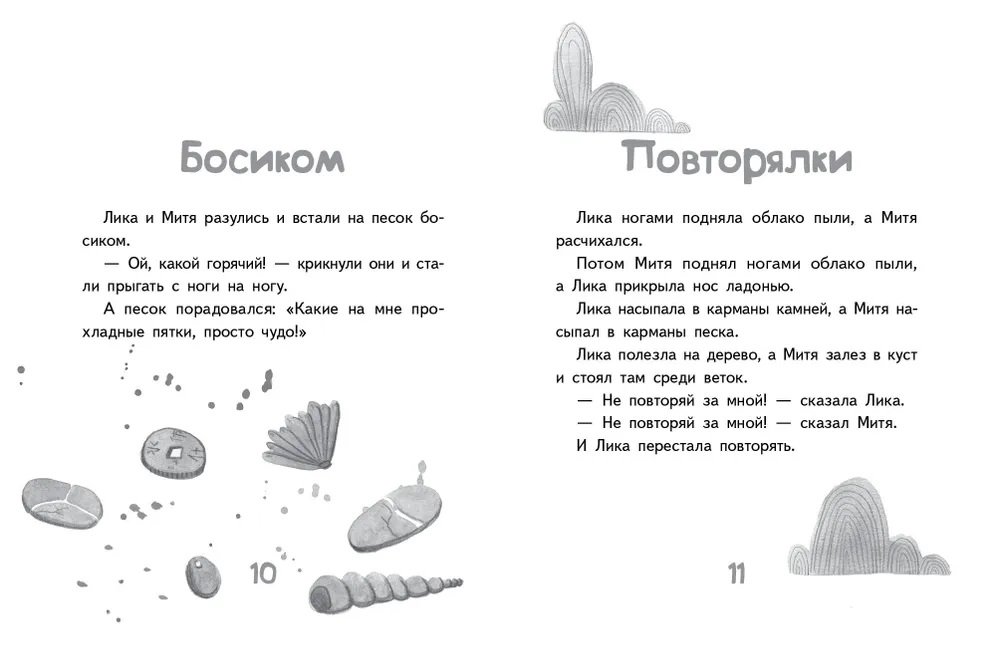 Митя — уже большой. Но Лика — ещё больше! На год — и на полголовы. Лика и Митя всё делают вместе. Но по-разному! Идут они, гуляют. У Лики — деревянный грузовик, а у Мити — кораблик. Заглянули они в зоопарк. Лике понравился голубь. Мите — воробей. (Зря папа надеялся на слона и жирафа!) И так — всегда! Особенно, когда надо чем-то порадовать маму с папой. Ради этого можно и помириться!