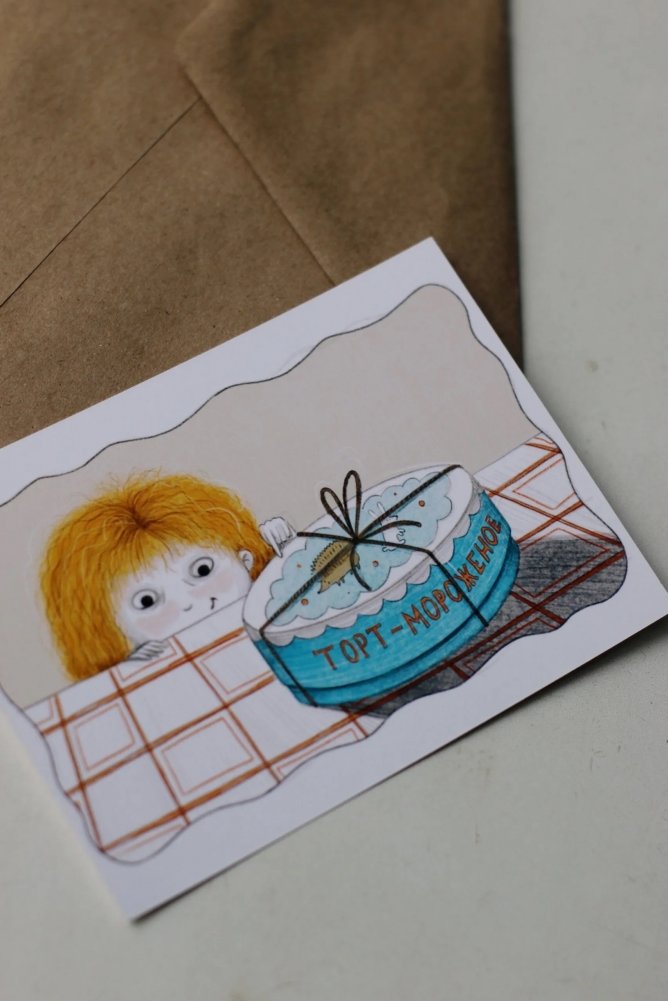 Почтовая открытка с иллюстрацией художницы Ерофеевой Полины к книге «Удивительная девочка«.
