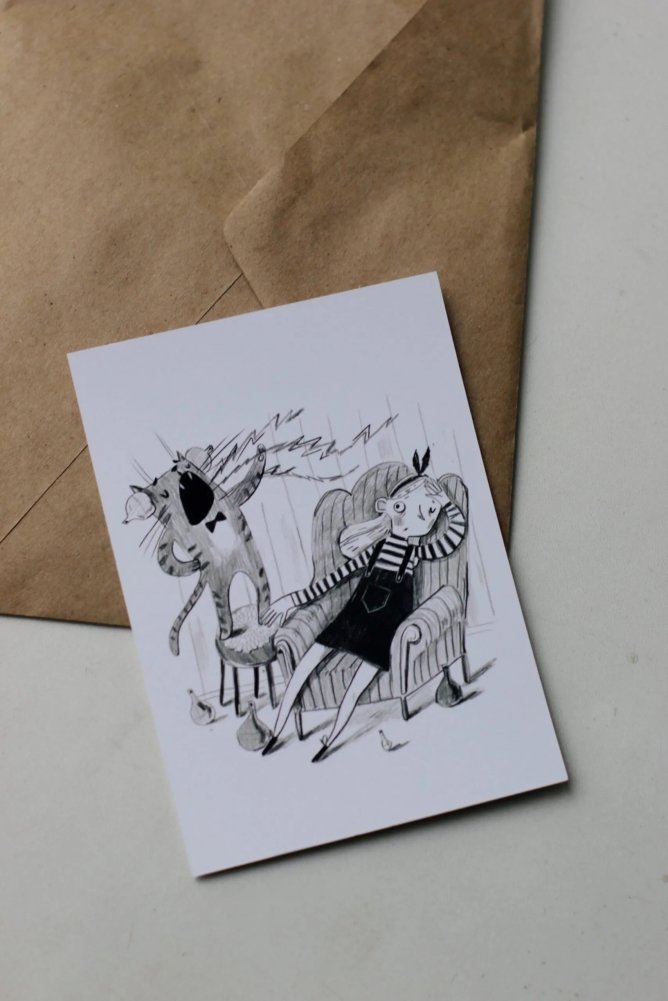 Почтовая открытка с иллюстрацией художницы Тиховой Екатерины к книге "Чокнутый этикет".