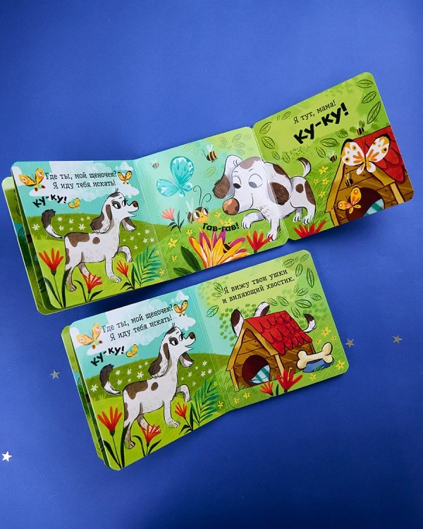 Откройте 5 больших окошек: котёнок, слонёнок, утёнок, мартышка и щенок спрятались на страницах этой книги!