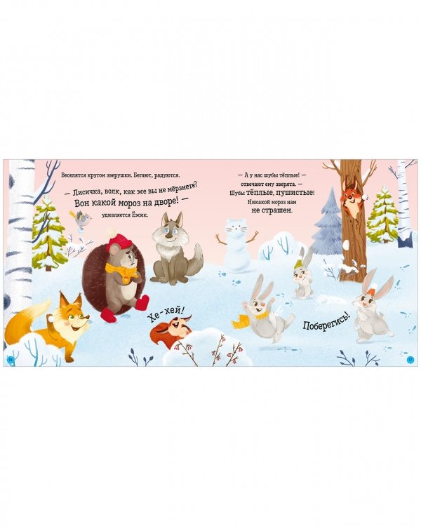 Книжка-картинка «Ежик и снежная зима» в форме увлекательной сказки познакомит малыша с самым холодным временем года, расскажет, что происходит в природе в это время и подарит настроение для прогулки по сугробам.