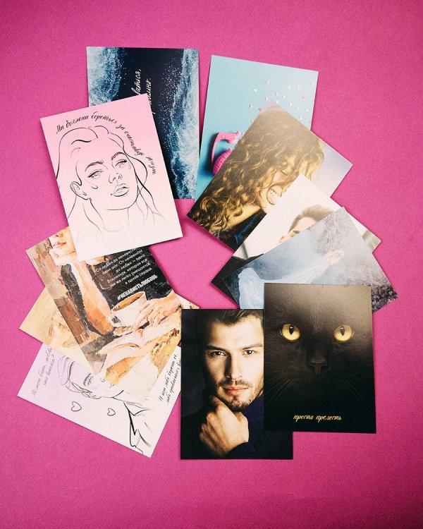 Каждая открытка сделана из плотного картона, оборот открыток максимально облегченный, чтобы вы могли написать на них все что захотите.