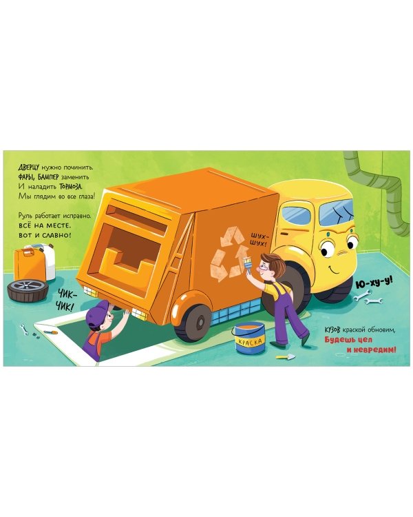 Как хорошо, что рядом есть верные друзья, которые всегда помогут! Маленькому мусоровозу предстоит серьёзный ремонт!
