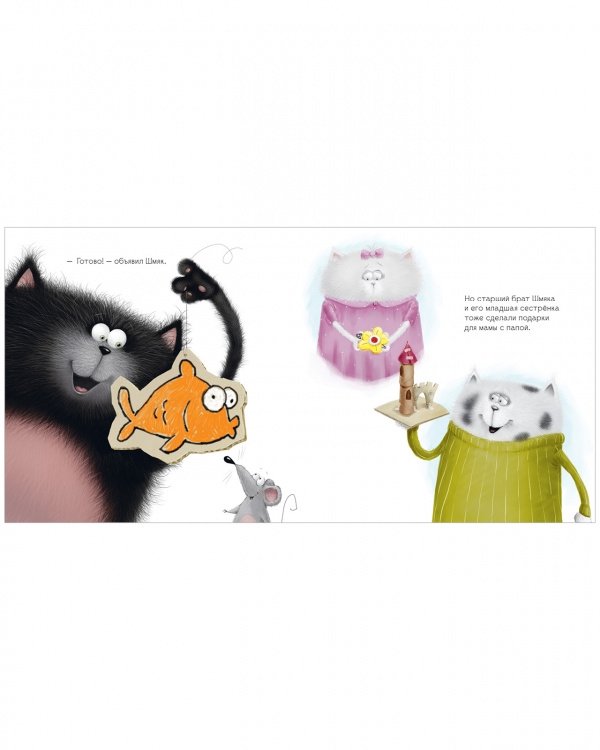 Вы узнаете, получил ли Шмяк подарок от Деда Мороза, что приготовил котенок для родителей и как прошла школьная театральная постановка. Эти истории уже полюбили миллионы маленьких читателей по всему миру. Только в России совокупный тираж перевалил за 1,5 миллиона экземпляров, а тысячи малышей обрели в неунывающем котенке лучшего друга.