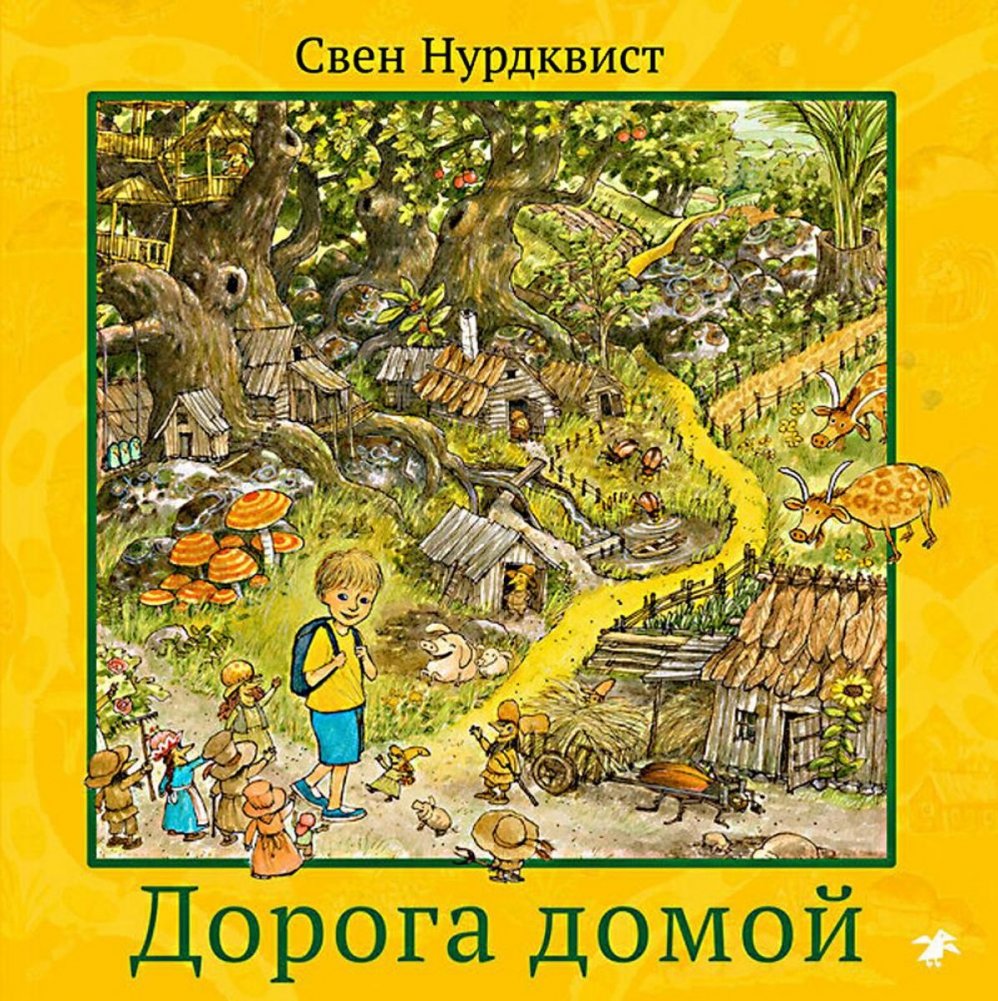 Мальчик очутился в незнакомом месте и не понимает, ни как сюда попал, ни как вернуться назад. Но на подмогу приходят маленькие человечки и Справочная бабушка. Важно все время следовать за желтой полоской: она обязательно выведет к дому. Желтая дорога вьется между скал, где странные жирафы травят анекдоты, ныряет в лес, населенный добрыми троллями, приводит в пустыню, уставленную кораблями и лодками, и превращается в желтую реку — а дальше и море, и остров, и замок принцессы, и лабиринт. На каждом повороте мальчика поджидают не только опасности, но и добрые помощники — то хулиганистые галки, то суровый капитан подводной лодки, то говорящий пес, то художница, рисующая волшебные картины. А в случае чего выручает подаренный человечками необыкновенный рюкзак.