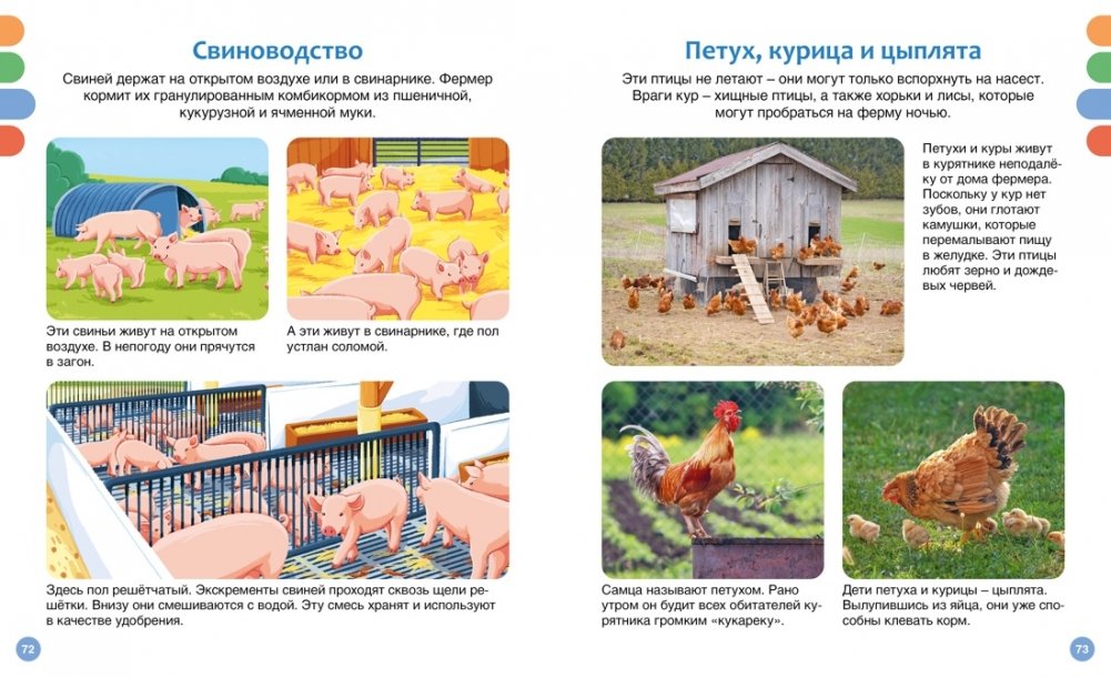 Эта книга расскажет о жизни за городом. Юные читатели узнают, чем занимаются фермеры и животноводы, каких животных они разводят, какие овощи и фрукты растут в огороде и в саду, сколько существует пород коров и что можно вырастить в современной теплице- небоскрёбе. Они также посмотрят, какую специальную технику используют при уборке урожая; увидят, как выращивают кукурузу, пшеницу, маслины и картофель. В книгах серии – только самая актуальная информация и самые современные иллюстрации! И это ещё не всё: в конце каждой книжки собраны увлекательные задания и игры, которые помогут весело провести время и повторить изученное.