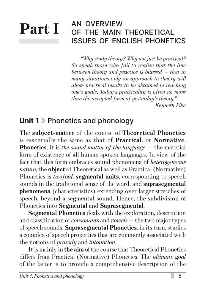 Пособие направлено на углубление и расширение знаний о фонетической системе английского языка, фонетических явлениях звучащей речи и взаимодействии фонетических средств с языковыми средствами других подсистем (уровней). Издание включает теоретическую часть, фрагменты аутентичных текстов по проблемам фонетики и практическую часть с планами семинарских занятий, упражнениями и глоссариями фонетических терминов.