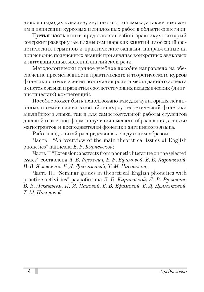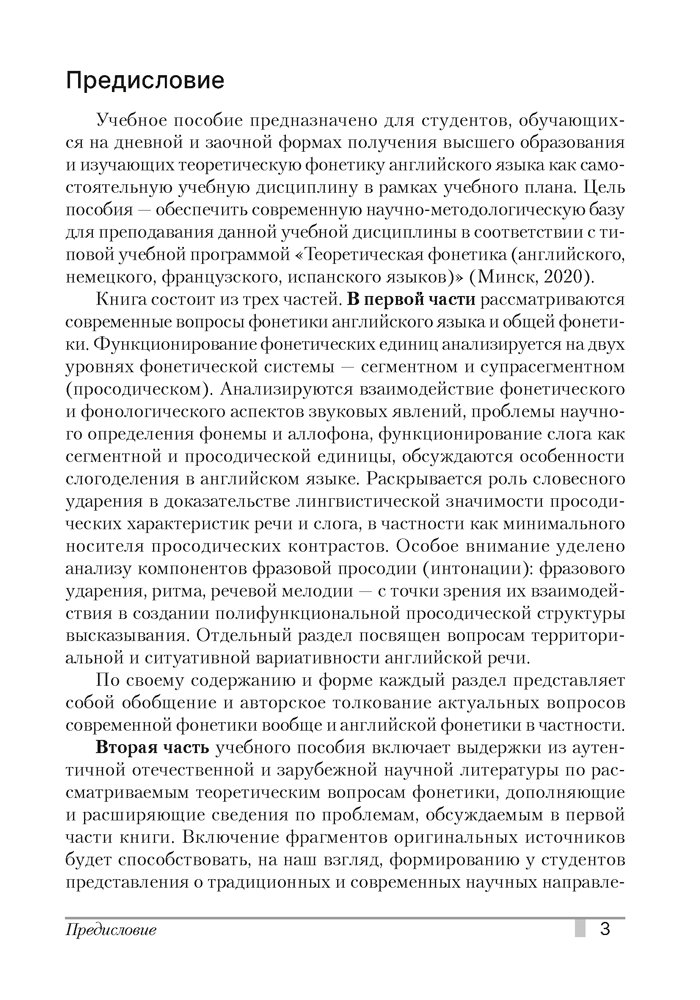 Адресуется студентам, обучающимся на дневной и заочной формах получения высшего образования по специальностям «Современные иностранные языки (с указанием языков)» и «Лингвистическое образование (с указанием языка)». Может быть полезно для разных категорий лиц, изучающих английский язык и желающих получить знания о фонетической системе английского языка.