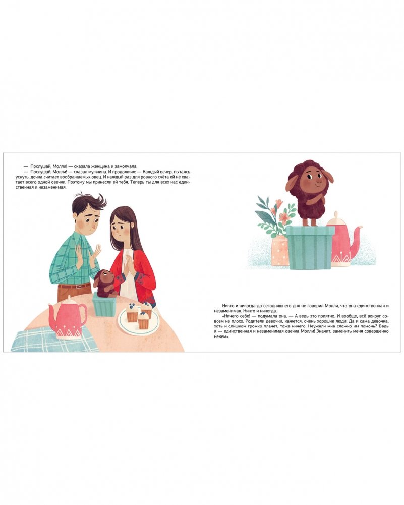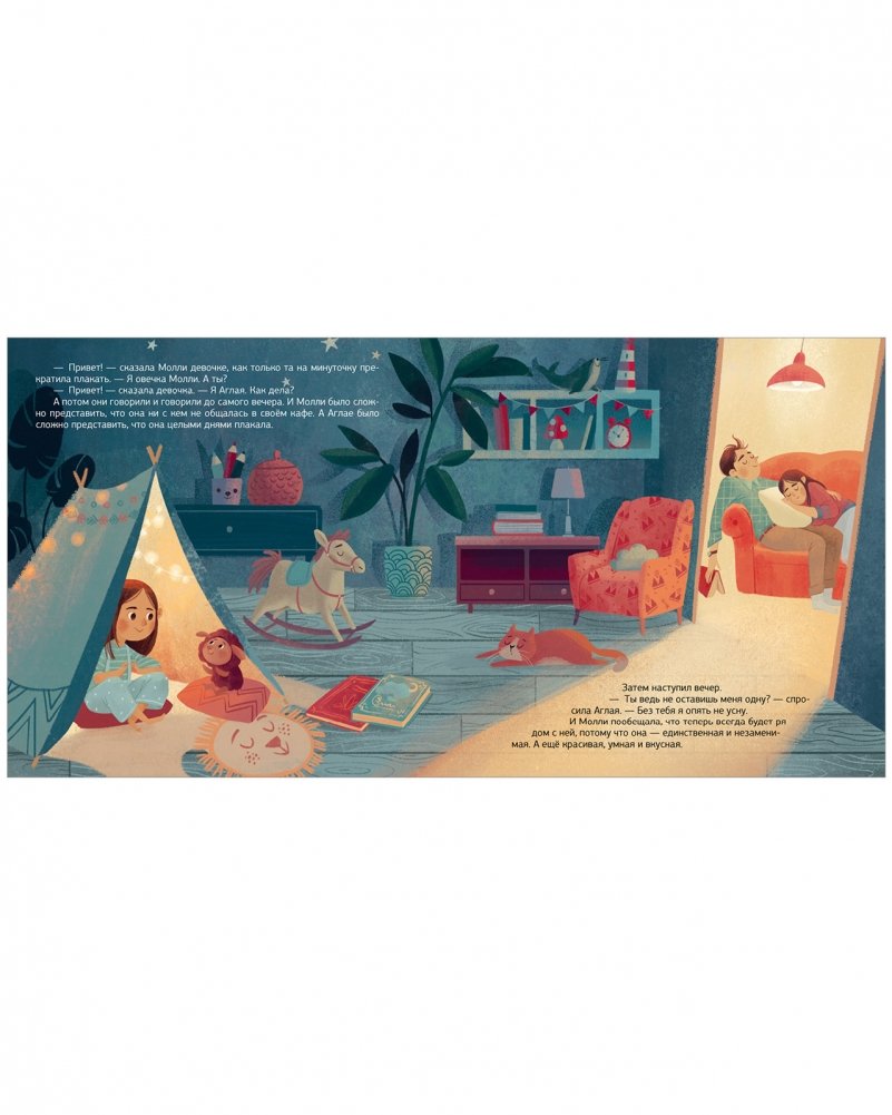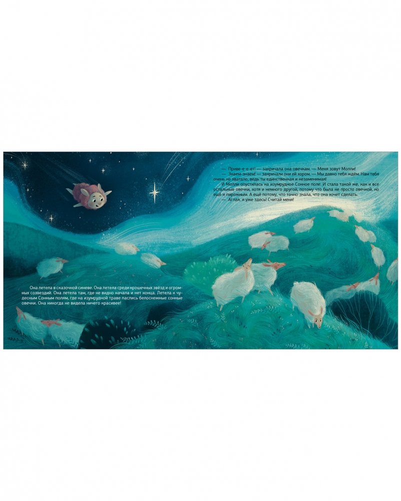 Девочке Аглае грустно и одиноко, поэтому она никак не может уснуть. Овечка Молли не хочет ни с кем общаться, потому что считает себя лучше других. Но однажды они встречаются. Аглая и Молли вместе отправятся гулять по Сонным полям, будут радоваться и скучать, но, самое главное, поймут, что настоящая дружба творит чудеса и всех делает лучше – и людей, и овечек, и даже пирожные…