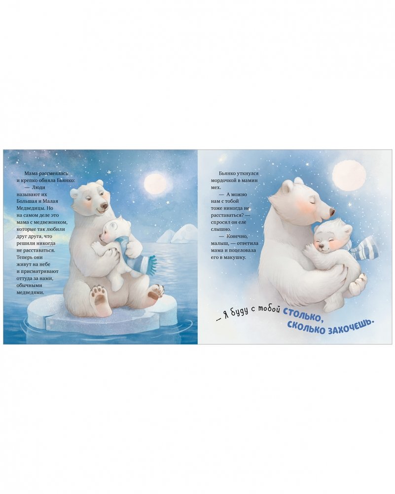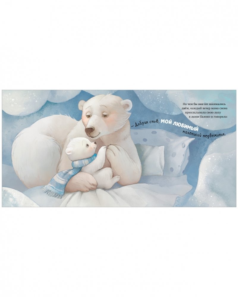 «Какая БОЛЬШАЯ лапа у мамы», — думал медвежонок Бьянко, засыпая в нежных объятиях. Проходили день за днём, неделя за неделей, малыш подрастал… И однажды он заметил, что теперь его лапка больше маминой — Бьянко стал совсем взрослым! Неужели теперь мама разлюбит своего малыша?..