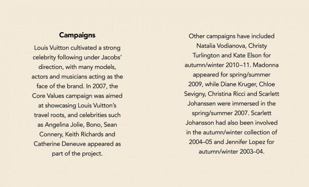 Louis Vuitton stores opened in cities throughout the world and expanded into other high-end brands. The merger in 1987 with Möet Hennessy created the megabrand LVMH, and in 1997 the appointment of Marc Jacobs launched Louis Vuitton into the world of fashion.