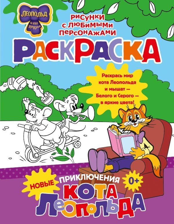 Рисунки с любимыми персонажами. Раскрась мир кота Леопольда и мышат Белого и Серого в яркие цвета!