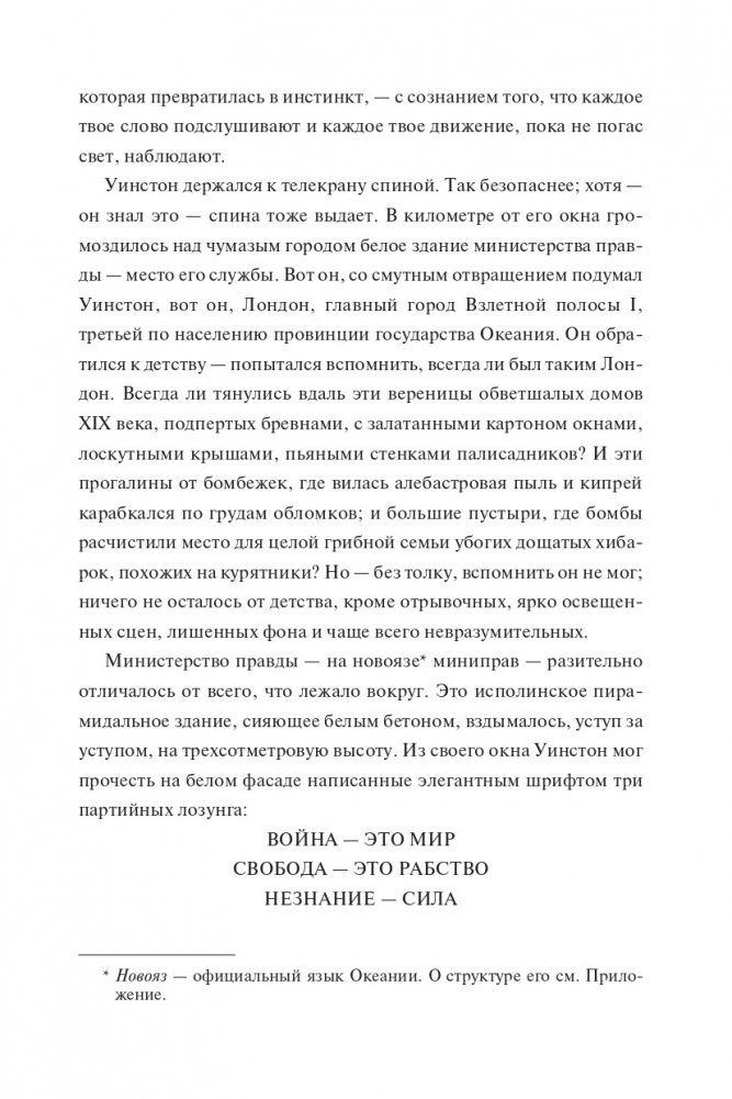 Каждый день клерк министерства правды Уинстон Смит переписывает историю в соответствии с линией партии. Он живет в Океании — лучшем, совершеннейшем из государств. Оно пожертвовало свободой во имя порядка, за соблюдением которого непрерывно следит всевидящее око Старшего Брата. Сомнения невозможны — любое «мыслепреступление» строго карается, но, когда маленький человек, скрывшись от взгляда камер в тесной нише в стене, начинает вести дневник, сквозь неповоротливую систему тотального контроля прорастает робкое зерно сопротивления.