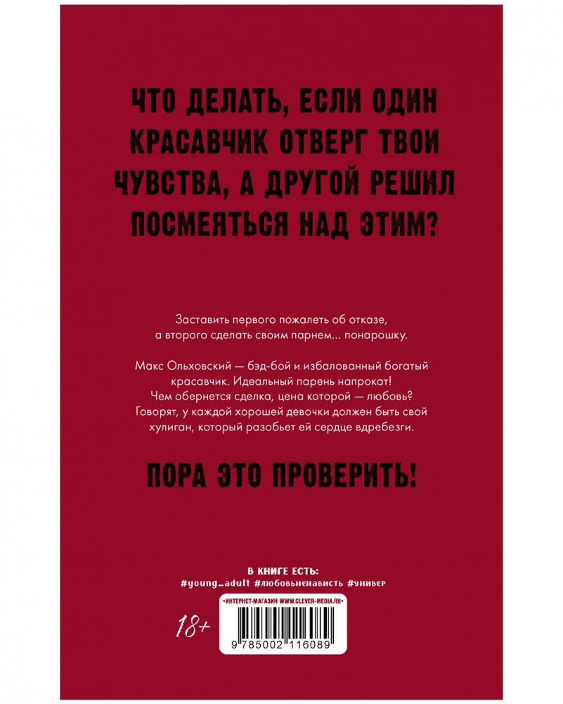 Макс Ольховский — бэд-бой и избалованный богатый красавчик. Идеальный парень напрокат! Чем обернется сделка, цена которой — любовь? Говорят, у каждой хорошей девочки должен быть свой хулиган, который разобьет ей сердце вдребезги.