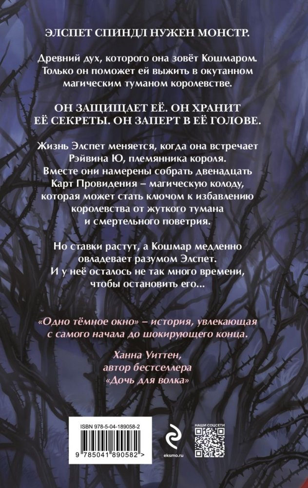 Элспет Спиндл нужен монстр — древний дух, которого она зовёт Кошмаром. Только он поможет ей выжить в окутанном магическим туманом королевстве. Он защищает её. Он хранит её секреты. Он заперт в её голове.
