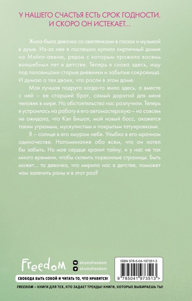 Когда Люси узнала, что дом ее подруги детства выставлен на продажу, она приняла решение его приобрести. Этот дом — целое сокровище воспоминаний, в котором под половицами находится дневник Эммы, девочки, с которой Люси раньше дружила. Посчитав случившееся знаком, Люси устраивается работать в автомастерскую брата Эммы, Кэла, которого не видела много лет. Между старыми друзьями сразу возникает химия. Но смогут ли они быть вместе, когда оба скрывают правду, и сумеют ли наслаждаться каждой секундой, проведенной вместе, если их счастье имеет срок годности?