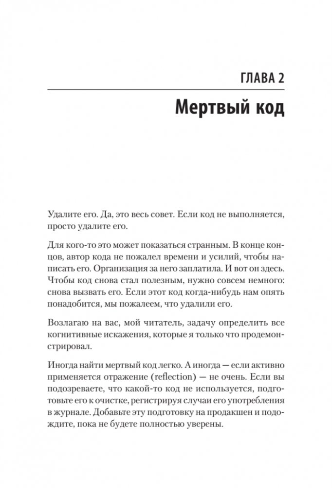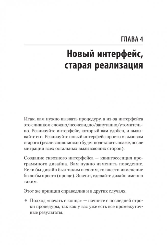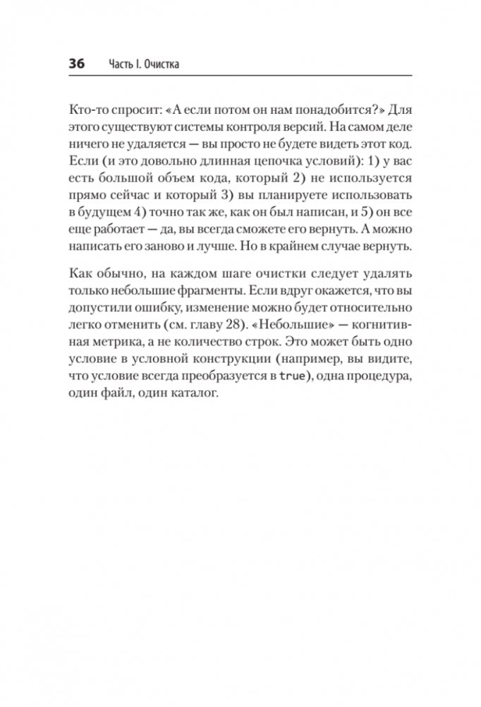 Книга не заставляет читателя проводить очистку сразу и целиком, а позволяет протестировать несколько примеров, которые подходят для поставленной задачи. Вы узнаете, как логически разделить на части большую функцию, содержащую множество строк кода. Познакомитесь с теоретическими понятиями программного дизайна: сцеплением, связностью, дисконтированными денежными потоками и вариативностью.