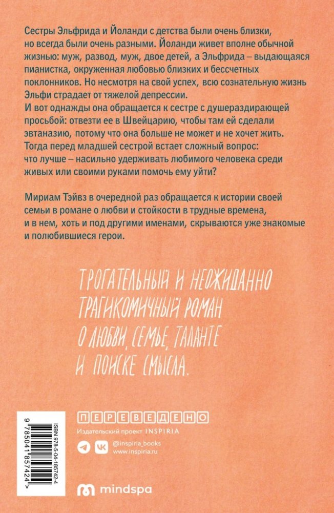 Сестры Эльфрида и Йоланди с детства были очень близки, но всегда были очень разными. Йоланди живет вполне обычную жизнь: муж, развод, муж, двое детей, ничего необычного, а Эльфрида стала выдающейся пианисткой, вышла замуж за хорошего мужчину, но примерно всю свою сознательную жизнь она страдает от тяжелой депрессии. И вот однажды она просит сестру отвезти ее в Швейцарию, чтобы там ей сделали эвтаназию, потому что она больше не может и не хочет жить.